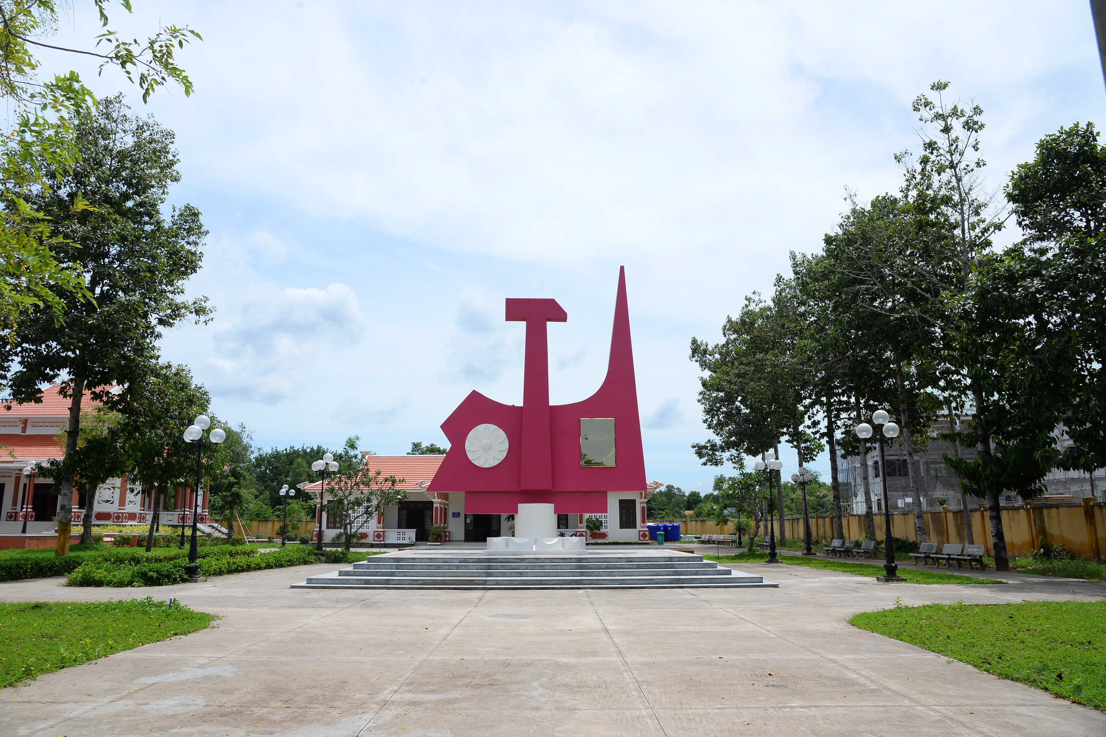 Xã Định Thủy thuộc huyện Mỏ Cày Nam, tỉnh Bến Tre được xem là cái “nôi” của phong trào Đồng Khởi lịch sử. Tại đây, vào ngày 17-1-1960, dưới sự chỉ huy, lãnh đạo trực tiếp của nữ tướng Nguyễn Thị Định, quân và dân xã Định Thủy đã nổi dậy, nổ phát súng đầu tiên, mở màn cho phong trào Đồng Khởi khắp miền Nam. Khu di tích Đồng Khởi Bến Tre được UBND tỉnh ra quyết định xây dựng vào năm 1998, trong khuôn viên với tổng diện tích hơn 4.600 m2. Công trình được khánh thành và đưa vào sử dụng năm 2000. Phía tay phải đường vào khu di tích có một hòn đá đỏ, đẹp và lạ mắt, được đặt uy nghi, vững chãi trên một bệ tam cấp thoáng đãng. Bề mặt của hòn đá này có khắc tám chữ vàng mà Trung ương đã phong tặng cho nhân dân và các lực lượng vũ trang tỉnh Bến Tre: “Anh dũng Đồng Khởi. Thắng Mỹ diệt ngụy”.
