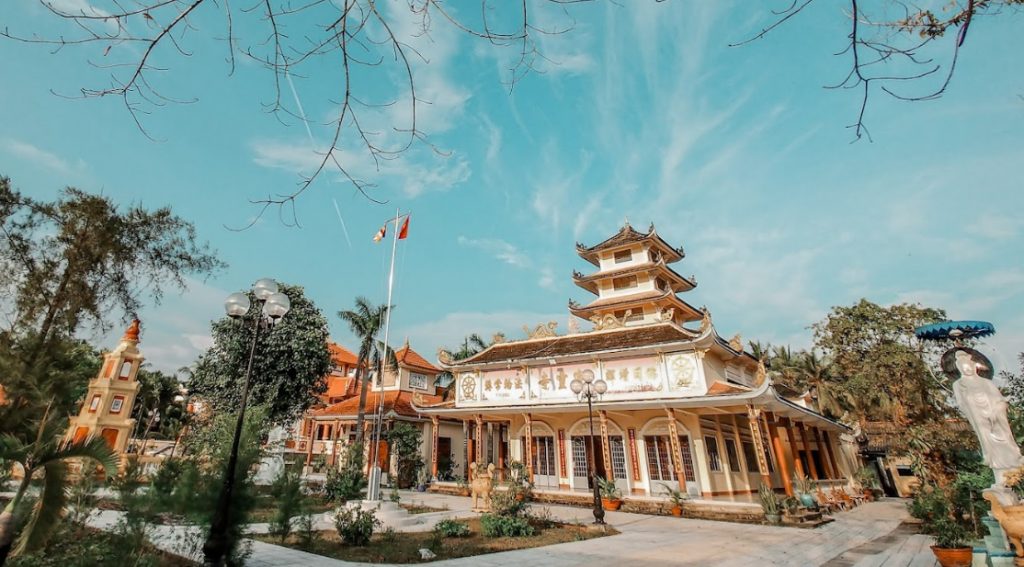 Địa chỉ: Xã Đại Điền, huyện Thạnh Phú, tỉnh Bến Tre. Vào năm 1904, nhà cổ Huỳnh Phủ được hoàn thành và mang đậm nét kiến trúc đặc trưng của xứ Huế. Ngôi nhà được xây dựng theo cấu trúc xuyên trính (có hai cột ở trung tâm, vì kèo nằm về hai phía đối xứng đòn đông và được nối với nhau bằng một thanh dầm ngang còn được gọi là trính hay trến). Nền nhà cổ Huỳnh Phủ thì được xây tam cấp, lót gạch Tàu với kiến trúc hình chữ nhất, gồm 3 phòng chính và thêm 2 phòng nhỏ ở đầu hồi. Gian thứ nhất là nơi thờ Phật, tổ tiên trong gia đình và thường được dùng để sinh hoạt chung với bề ngang khoảng 17m, chiều dài tầm 25m. Nhà cổ Huỳnh Phủ được xây dựng hoàn toàn bằng thủ công với 48 cột lớn bằng gỗ lim, căm xe còn lại 32 cây bằng xi măng. Bước vào trong, bạn chắc chắn sẽ hiểu được lý do nên đi khám phá Bến Tre của bản thân là gì bởi vì bạn chắc chắn sẽ bị choáng ngợp khi được tận mắt chiêm ngưỡng những hoa văn chạm khắc vô cùng tỉ mỉ, tinh tế và công phu. Hệ thống vì kèo, xuyên trính của nhà cổ Huỳnh Phủ đều được chạm trổ công phu và tỉ mỉ đến từng chi tiết nhỏ. Nếu nhìn lên trên trần nhà, bạn sẽ thấy có một vài mái ngói mà mặt âm của nó được vẽ hoa văn mây nước vô cùng tinh xảo. Ngày xưa, toàn bộ mái ngói ở nhà cổ Huỳnh Phủ đều được vẽ hoa văn nhưng vào cuối năm 2006, cơn bão cấp 9 đã làm cho phần ngói bị hư hỏng khá nhiều nên gia đình phải lựa những viên còn sử dụng được để lợp lại giữ kỷ niệm.